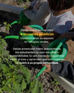 “Los huertos comunitarios son espacios importantes de aprendizaje, de conexión con la tierra y de unión entre la comunidad. Aquí tienen acceso niñas, niños y familias que vienen a aprender cómo cultivar su alimento”, explicó.