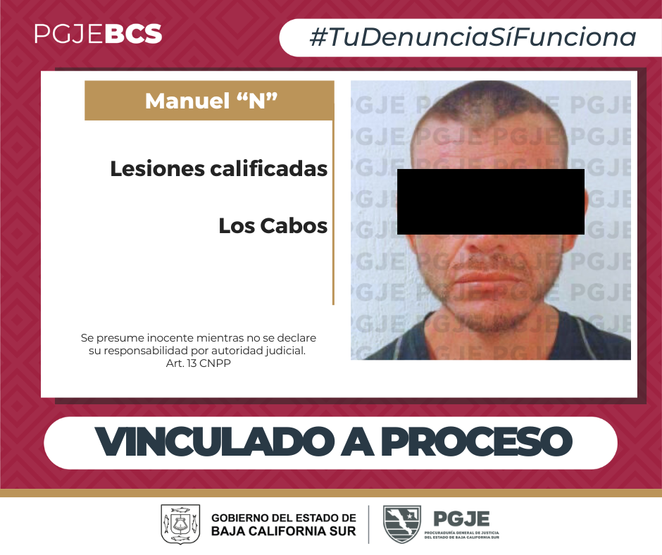 Manuel “N” quedó vinculado a proceso luego de los datos de prueba presentados por el agente del Ministerio Público de la Unidad de Investigación de Delitos Diversos en San José del Cabos, en la audiencia inicial por orden de aprehensión.