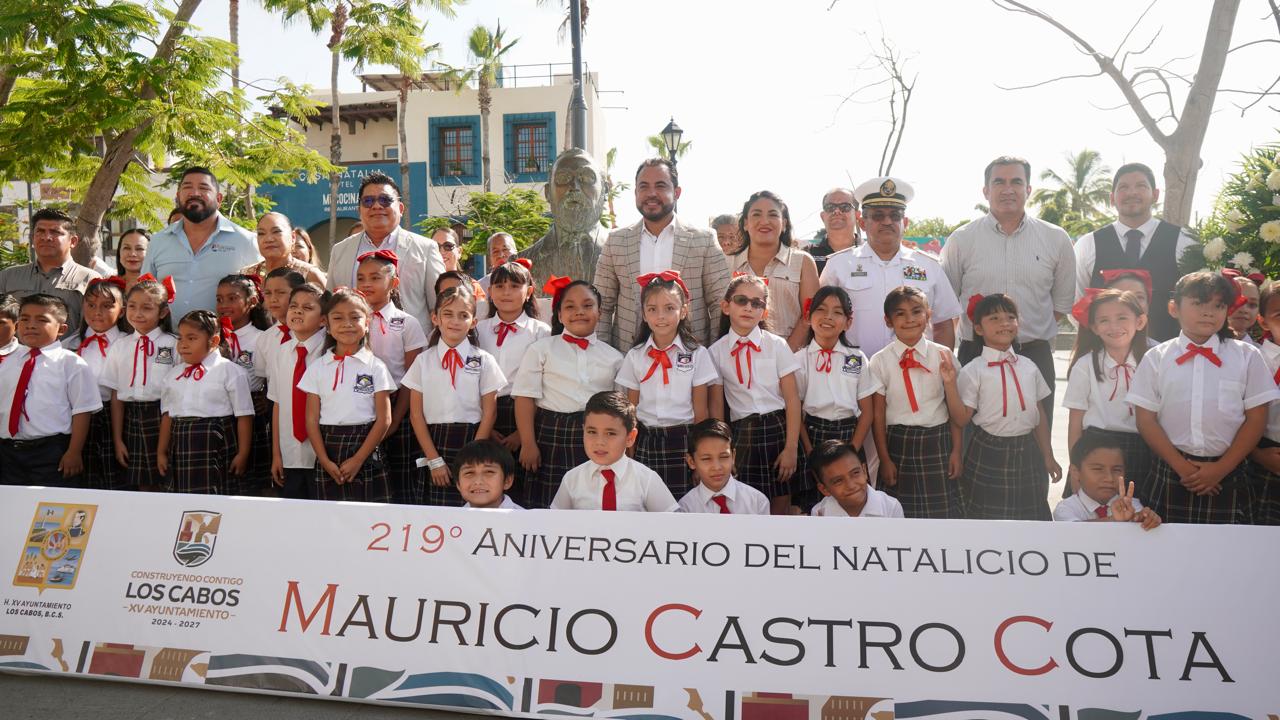 Durante la ceremonia conmemorativa, el titular de la Contraloría Municipal, Mario Alejandro Fernández Briseñodio lectura a la biografía de Mauricio Castro Cota, destacado líder sudcaliforniano que encabezó la defensa contra la invasión norteamericana de 1847 y quien, hasta su muerte en 1879, dejó un legado de lucha y orgullo por la tierra que lo vio nacer. Al término del evento, el alcalde, acompañado de integrantes del Cabildo, funcionarios y alumnado de la primaria que lleva el nombre del héroe, encabezó la entrega de ofrendas florales y guardia de honor en la rotonda donde se ubica su busto.