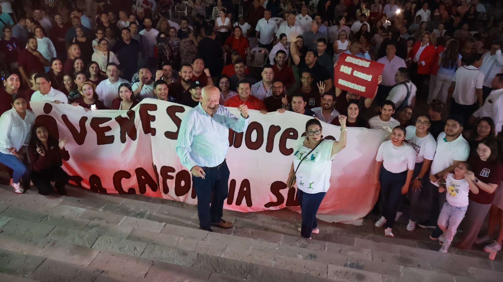 Durante su mensaje, el mandatario estatal expresó su reconocimiento a todos los ciudadanos y ciudadanas que han hecho posible este movimiento que nació con el propósito de retomar la esperanza al pueblo sudcaliforniano, después de una década de administraciones de corte derechista, subrayó.