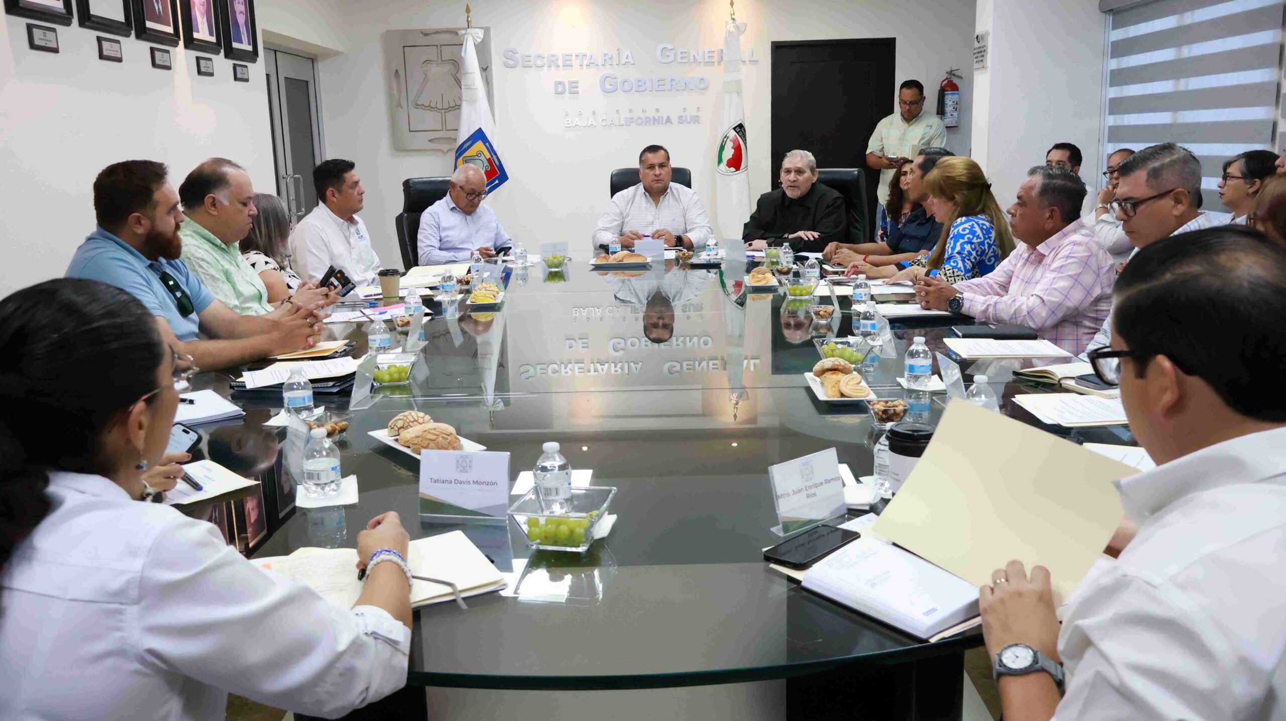 El secretario General de Gobierno, José Saúl González Núñez, acompañado del jefe de la Oficina del Ejecutivo, Jesús Omar Castro Cota, y del Coordinador de Asesores, José Guadalupe Ojeda Aguilar, encabezó una reunión de trabajo con titulares de las dependencias que coordinan los distintos subcomités del Comité de Planeación para el Desarrollo del Estado de Baja California Sur (COPLADEBCS).