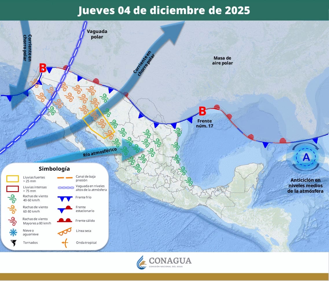 El Servicio Meteorológico Nacional (SMN) de la CONAGUA emitió un pronóstico oficial a 96 horas, en el que se confirma la llegada de estos efectos a la región. Las lluvias se acompañarán de vientos fríos con rachas de entre 40 y 60 kilómetros por hora y un marcado descenso en las temperaturas, que se espera oscilarán entre los 16 y 20 grados centígrados durante los días miércoles y jueves.