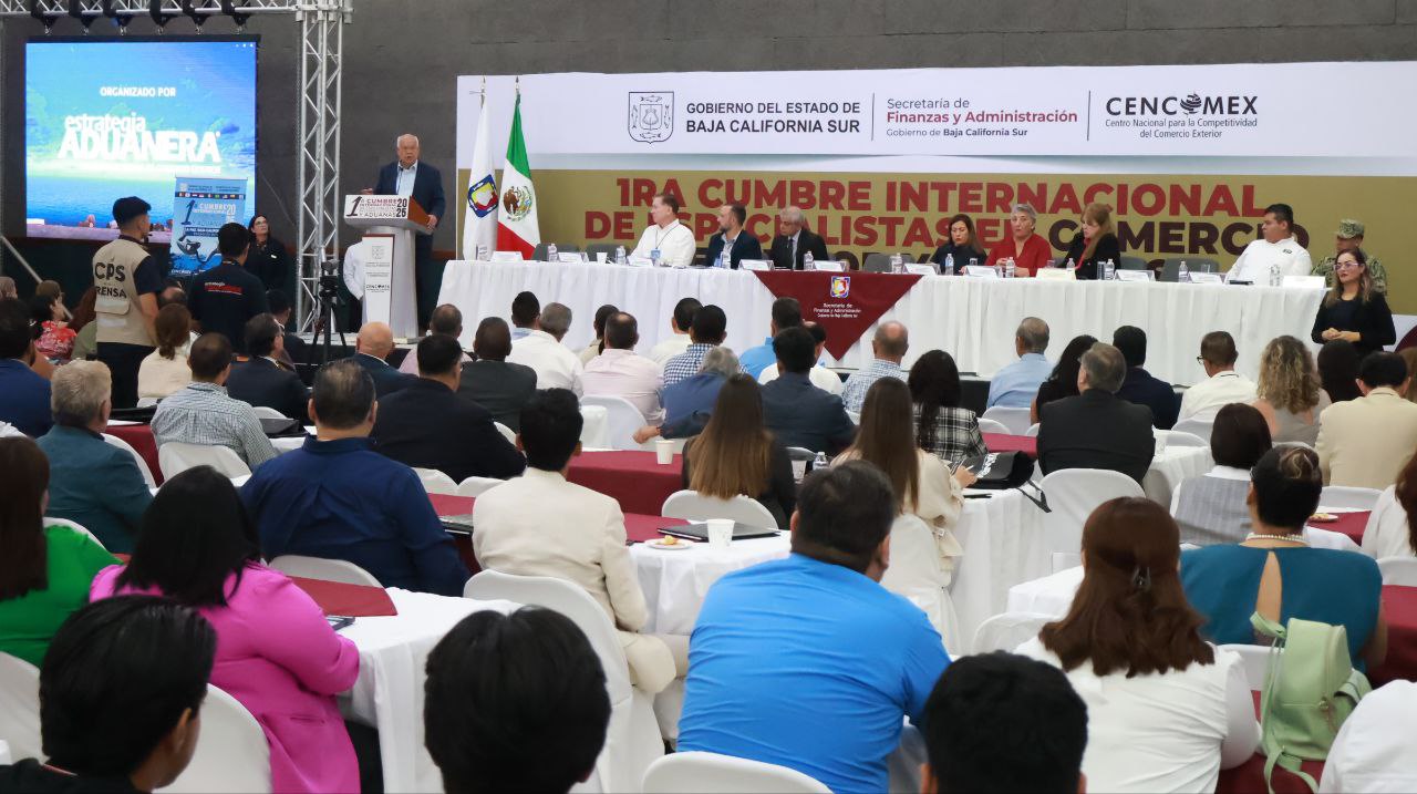 El gobernador del estado, Víctor Manuel Castro Cosío, inauguró este jueves en la ciudad de La Paz la Primera Cumbre Internacional de Especialistas en Comercio Exterior y Aduanas 2025, donde resaltó la importancia de contar con un sistema aduanero moderno, confiable y seguro para Baja California Sur, México y el mundo. Confió en que, durante el encuentro de tres días de jornadas, se lograrán acuerdos concretos que permitirán avanzar en los objetivos planteados.