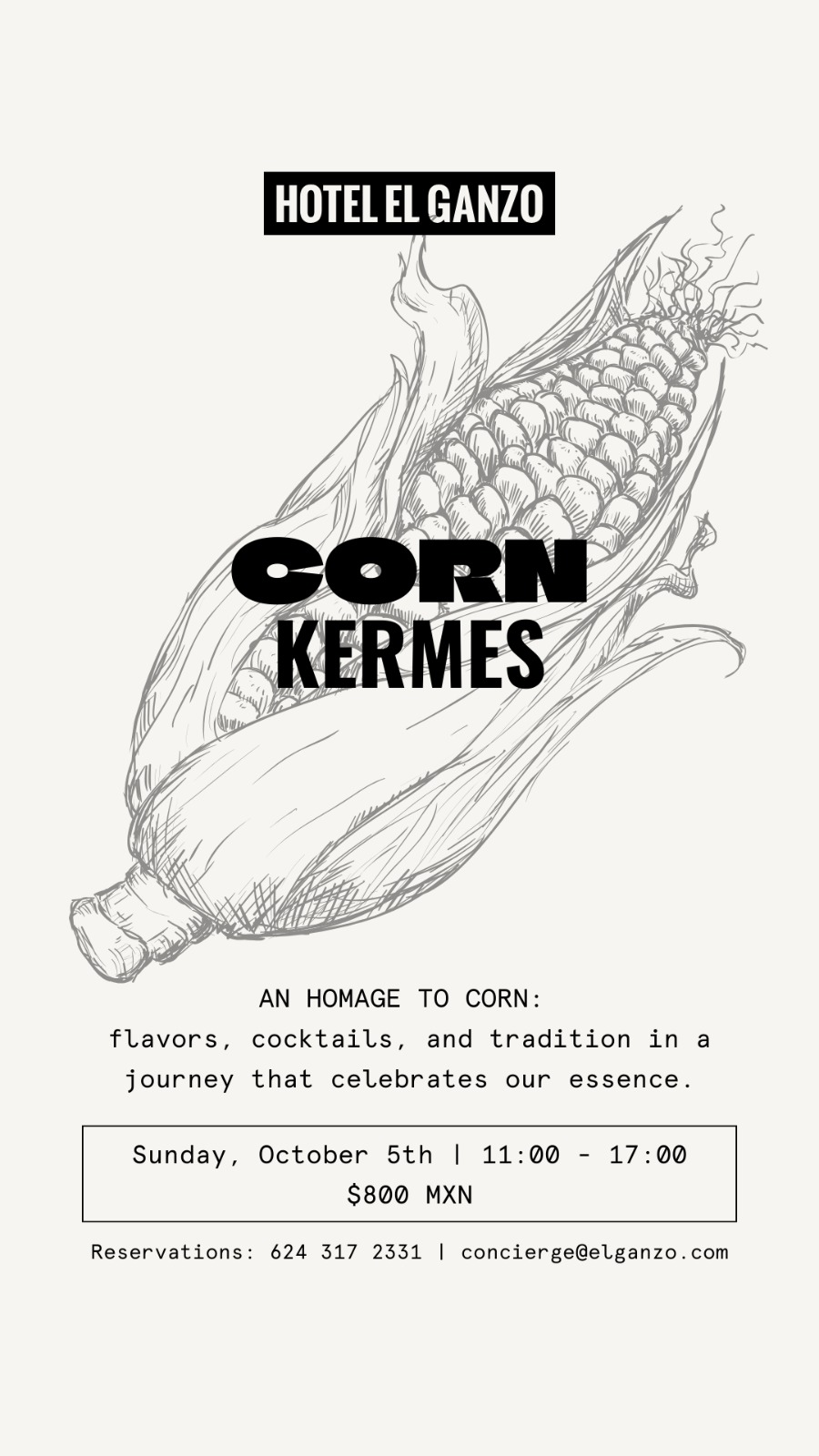 “El maíz es parte esencial de nuestra identidad y queremos celebrarlo a través de la cocina, la mixología y la convivencia”, expresó el equipo de Hotel El Ganzo al presentar el evento. El acceso tiene un costo de $800 MXN e incluye la experiencia completa del recorrido gastronómico.