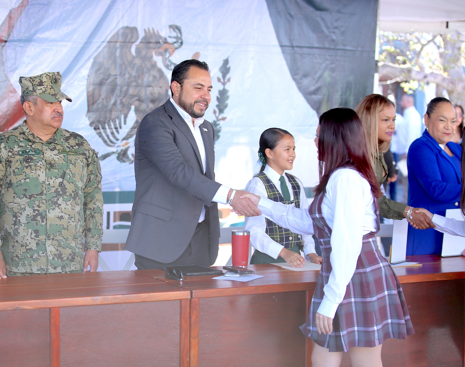 Para finalizar, se destaca que en el marco de la ceremonia de honores a la bandera el alcalde Christian Agúndez encabezó la premiación a escuelas ganadoras del pasado concurso de escoltas alusivo al Día de la Bandera, para lo cual estuvo acompañado de integrantes del H. Cabildo de Los Cabos, titulares de distintas dependencias municipales. Integrantes del III Cabildo Infantil y alumnado de diferentes planteles escolares.